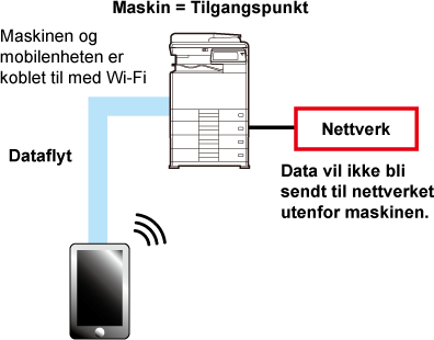 Maskinen kan konfigureres som et tilgangspunkt og kan