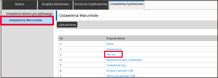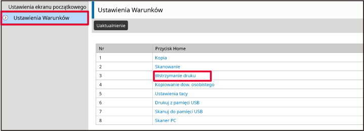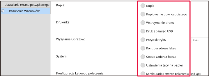Część ustawień może wymagać podania hasła po kliknięciu [Ustawienia ekranu początkowego]. Jeśli nie wykonano autoryzacji użytkownika, należy wpisać hasło administratora.