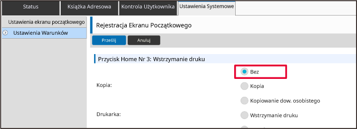 Wybierz opcję [Bez] i kliknij przycisk [Prześlij].