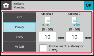 Naciśnij wartość liczbową wskazującą obszar przesunięcia marginesu na przedniej i tylnej stronie, a następnie wprowadź obszar za pomocą przycisków numerycznych.