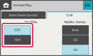wybranym formacie pliku [TIFF], ustaw pole wyboru dla [Plik na stronę]