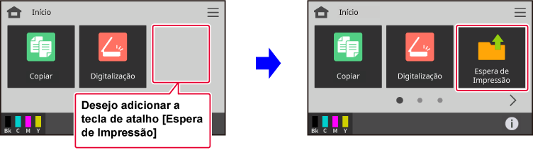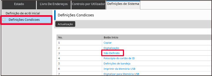 Algumas definições exigirão a introdução da palavra-passe de utilizador após clicar em [Definição de ecrã inicial]. Se não tiver sido efetuada a autenticação do utilizador, será necessário introduzir a palavra-passe de administrador.