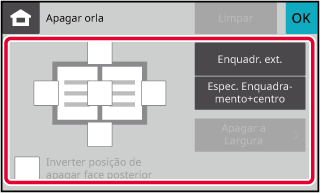 Coloque o original na bandeja do alimentador de documentos do alimentador automático de documentos ou no vidro de exposição.Toque na tecla [Outros] e toque na tecla [Apagar Margem].