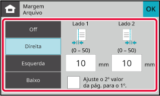 Toque no visor do valor numérico que indica a área da margem de arquivo no lado da frente ou no verso, e introduza a área usando as teclas numéricas.