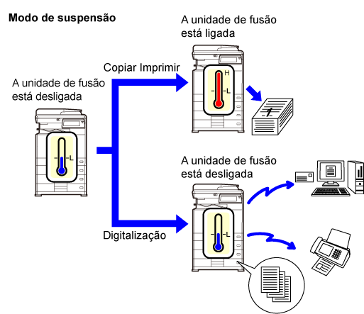 operações e da unidade de fusão, e faz a máquina aguardar no estado