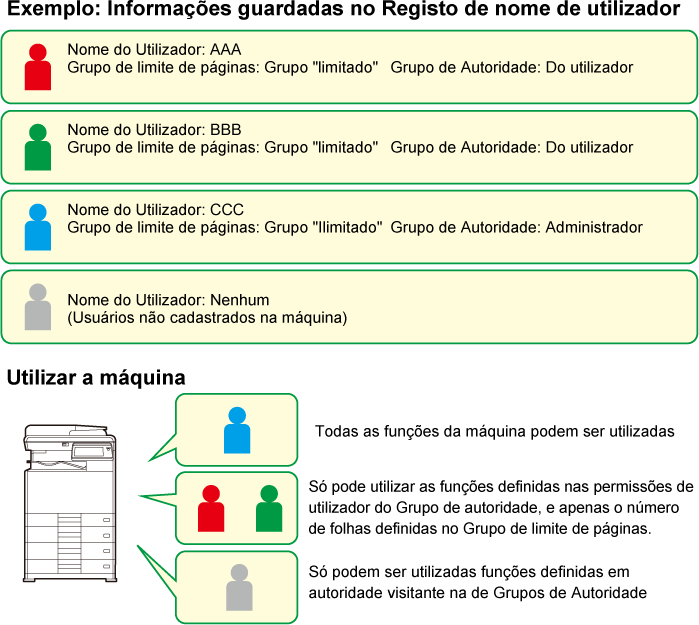 não registadas utilizem a máquina ou proibi-las de usar determinadas