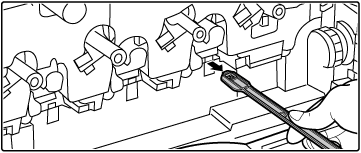 Elementele de curăţare de rezervă sunt depozitate pe recipientul de colectare a tonerului. Prindeţi capătul elementului de curăţare şi scoateţi-l de pe recipientul de colectare a tonerului.