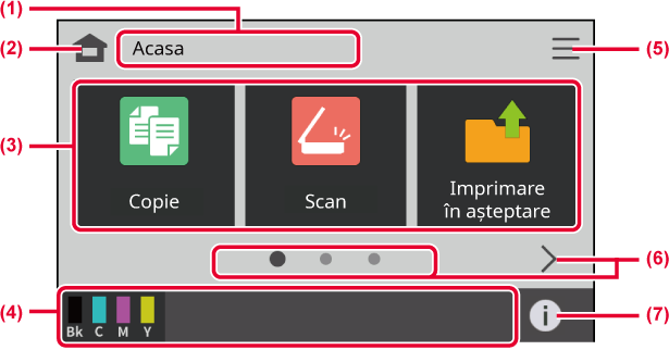 pe panoul tactil. Ecranul principal afişează tastele pentru selectarea