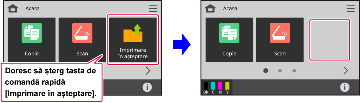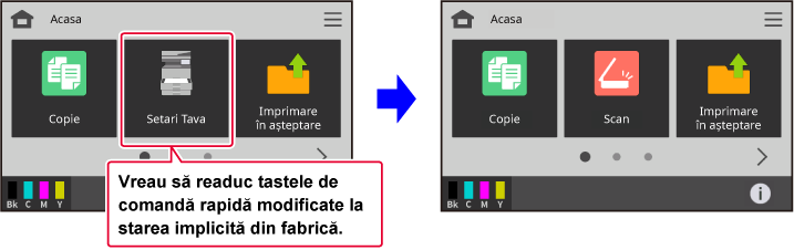 a tastelor de comenzi rapide din ecranul principal la starea implicită