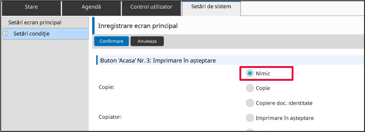 Selectaţi [Nimic] şi executaţi clic pe butonul [Confirmare].