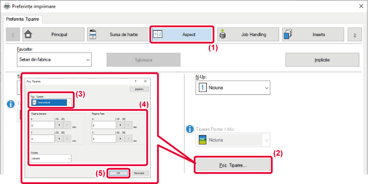 - Setați valoarea aferentă deplasării poziției de tipărire