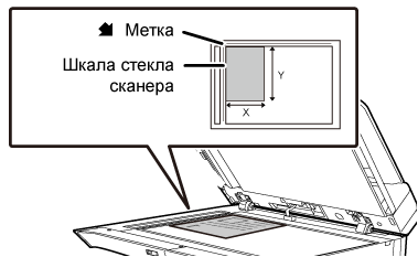 Поместите оригинал лицевой стороной вниз и совместите верхний левый угол оригинала с дальним левым углом (с концом стрелки
