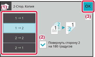 РЕЖИМ КОПИРОВАНИЯВыберите режим 2-стороннего копирования.