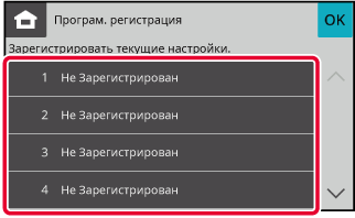 Вызовите сохраненную программу. ![]() Коснитесь кнопки [Цвет Старт] или [Ч/Б Старт]. |