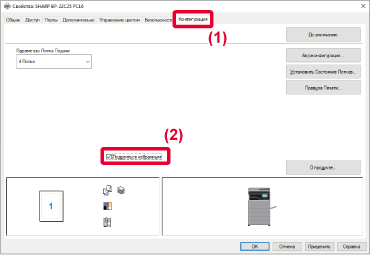 принтера. Сконфигурированные на вкладках насройки будут отображены