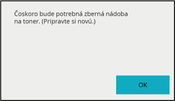 Keď sa zásobník na zber tonera takmer naplní, zobrazí sa nasledujúce
