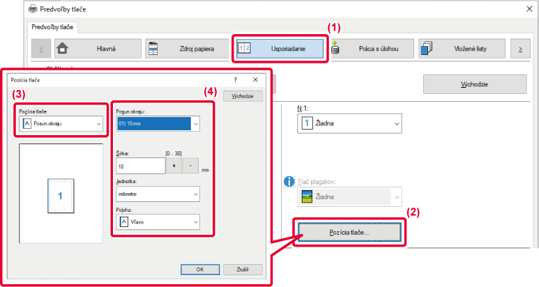 TLAČ S NASTAVENÍM POSUNU OKRAJOV (OKRAJE)