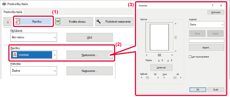 - Vyberte možnosť [Vodotlač] v "Razítko" a kliknite na