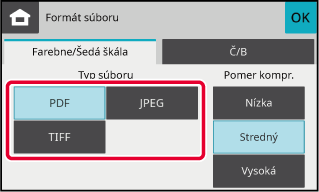 kompresie/kompresný pomer) na odoslanie naskenovaného obrázka počas