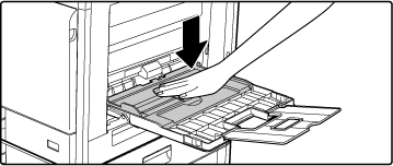 papper som finns kvar i handinmatningsfacket och tryck ned i mitten