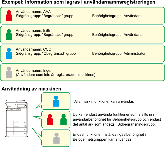 en viss grupp kan använda för kopiering eller utskriftsjobb. Användarna