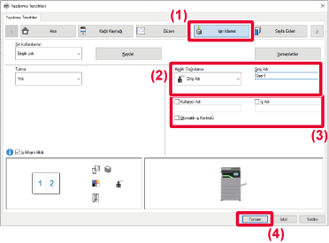 KULLANICI KİMLİK DOĞRULAMA İŞLEVİ DEVREDEYKEN YAZDIRMA