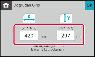Ayarları" bölümünde belirtilen orijinal boyutu dışındaki bir boyutta