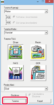• Belge Besleyici tablasından tarama yapılırken [Önizle] düğmesi tıklatılırsa, görüntü önizleme için sadece bir orijinal sayfa taranır. Bu orijinali taramaya dahil etmek isterseniz, tekrar belge besleyici tablasına yerleştirin.