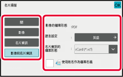 啟用 [使用姓名作為檔案名稱] 時,可將掃描名片上的姓名指定為檔案名稱。