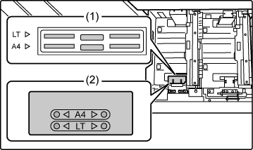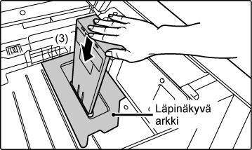 Kiinnita paperikoon ohjain ja läpinäkyvä arkki käytettävän paperin koon mukaisesti.