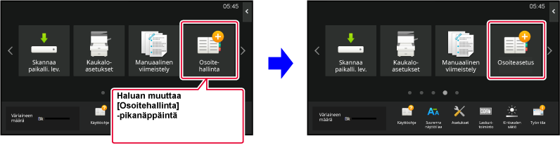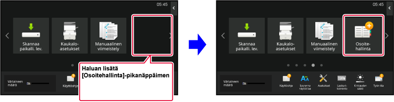 Kosketa siirrettävää pikanäppäintä ja kosketa kohtaa [Siirtonäppäin].