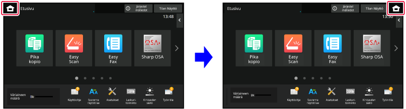 Asetukset tallennetaan laitteeseen ja niitä sovelletaan.Voit muuttaa [Kotinäyttö]-näppäimen sijaintia.