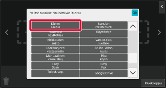 Asetukset tallennetaan laitteeseen ja niitä sovelletaan.Tässä osassa kuvataan miten pikanäppäintä