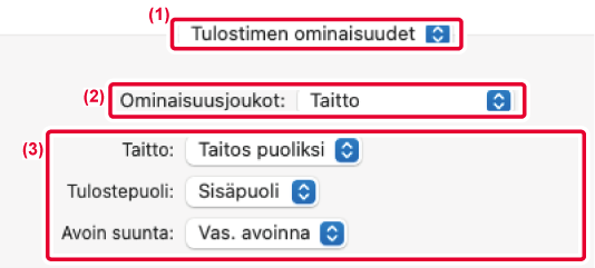 | Taittotyypit | Tulostuspuoli | Taittosuunta | Taittotulos | Kuvaus |