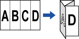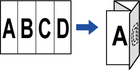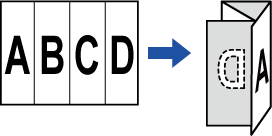 Jos esimerkiksi A4 (8-1/2" × 11")- ja A3 (11" × 17") -kokoiset tulostetut kuvat sekoitetaan, vain A3 (11" × 17") -kokoinen paperi taitetaan ja muunnetaan A4 (8-1/2" × 11") -kokoiseksi paperiksi. Kopiot siirretään ulostulotasolle arkki kerrallaan. |