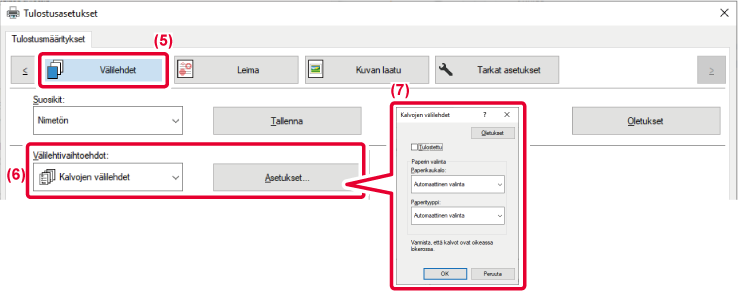 Valitse tulostinohjaimen ominaisuudet -ikkunan [Välilehti]