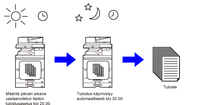 Vastaanotetut faksit noudetaan ja tulostetaan automaattisesti.