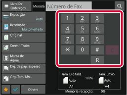 Tocar nas teclas numéricas para introduzir directamente o número de destino, ou procurar e obter o livro de endereços ou o número.