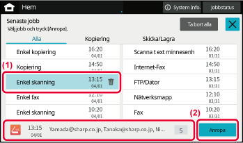 senaste jobben i en lista.