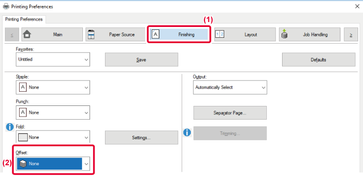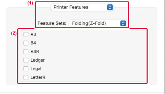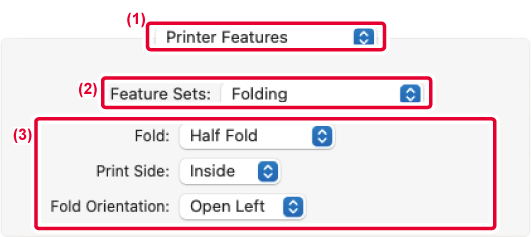 Multiple sheets are collectively folded in the center. When a saddle stitch finisher is installed, one or multiple sheets can be selected. |