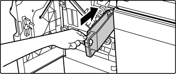 Uchopte rukojeť schránky na odpad děrování, opatrně ji vytáhněte a zlikvidujte odpad.