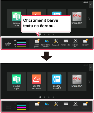 Na výchozí obrazovce otevřete panel akcí a klepněte na [Změna barvy textu na domácí obrazovce].