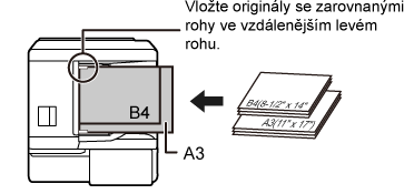 Položte originály způsobem znázorněným na obrazovce Originál s různou velikostí.