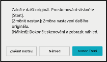Opakujte tento krok, dokud nejsou naskenovány všechny originály.Opakujte, dokud nejsou všechny strany naskenovány, a zkontrolujte náhled obrazu na obrazovce náhledu.