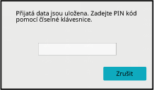 Po klepnutí na tlačítko [Zrušit] se obrazovka pro zadávání kódu PIN zavře. Zobrazí se znovu když klepnete na nebo změníte režimy. Přítomnost dat v paměti bude signalizována problikáváním na dotykovém panelu.