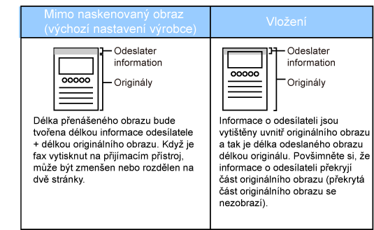 zadán klávesou předvolby, tato informace nebude přidána k faxu a vytisknuta.