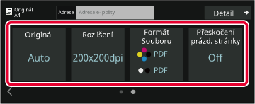Zadejte velikost skenování originálu, expozici, formát souboru a další položky.