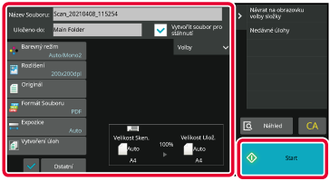 Vložte originál do zásobníku automatického podavače dokumentů nebo na sklo pro dokumenty.Zkontrolujte název souboru a místo uložení a u požadovaného nastavení klikněte na příslušnou klávesu.