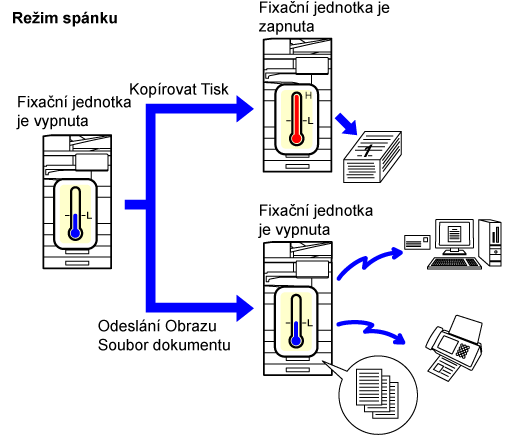 a přepíná přístroj do vyčkávacího režimu s nízkou spotřebou energie.