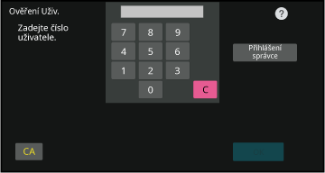 číslo uživatele a heslo. Požádejte administrátora přístroje o informace,